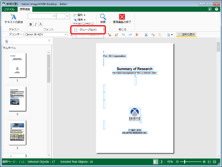 (すべて選択)をクリックしても、同じ操作ができます。Desktop Editorのツールバーにツールボタンが表示されていない場合は、次を参照して表示させてください。[Shift]キー、または[Ctrl]キーを押しながらクリックすると、複数のオブジェクトを選択できます。