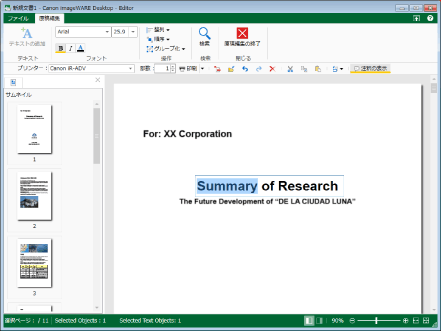 ワークウィンドウでオブジェクトを選択すると、選択されているオブジェクト総数とテキストオブジェクト数がステータスバーに表示されます。
