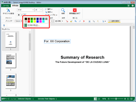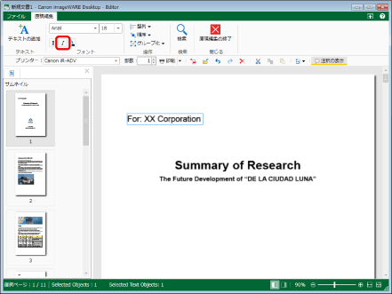 変更した設定内容は、選択したすべてのテキストオブジェクトに適用されます。変更しなかった項目については、それぞれのオブジェクトの既存の設定のままです。