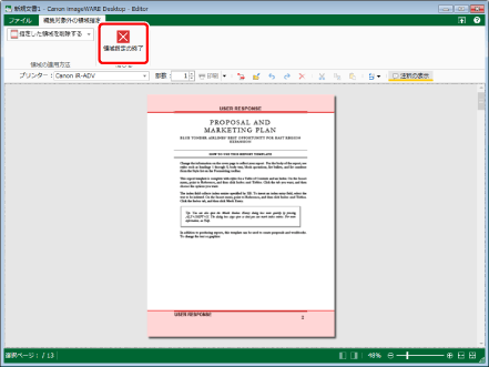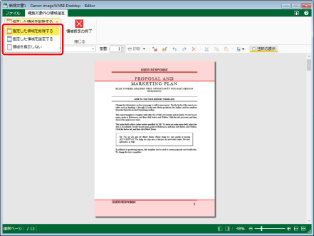 次のページは、余白をつめる対象から除外されます。そのため、[指定した領域を削除する]を選択していても、編集対象外の領域に設定した領域が削除されません。この場合、削除したいオブジェクトを手動で削除してください。