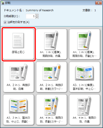 文書を作成したアプリケーションの[印刷]ダイアログボックス、または[印刷中]ダイアログボックスが表示される場合があります。その場合は、Desktop Document Writerを出力プリンターに指定して印刷します。