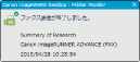 Printer Monitorでファクス送信ジョブの状態を表示する設定を行うと、タスクバーの状態表示アイコンで表示されます。ファクス送信ジョブの終了時には、終了通知が行われます。