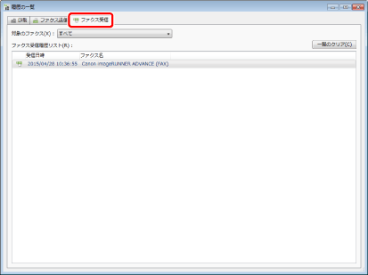 履歴を表示するファクスが表示されます。[すべて]のみ選択できます。
