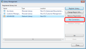 Confirm that the destination has been added to [Registered Library List] and click [Close].