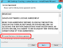 Check the content of the License Agreement. Select [I accept the terms in the license agreement] if you agree, and then click [Next].