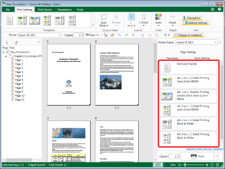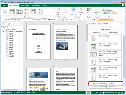 Click [Register Print Settings Template] on the [Templates] tab on the Details Window