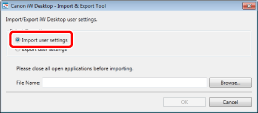 For Windows 10, select the [Start] menu > [All apps] > [Canon iW] > [iW Desktop Import & Export Tool].