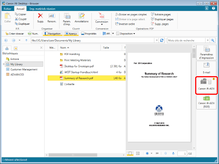 Dans Desktop, le résultat de l'impression/l'envoi de télécopies peut être confirmé sur un ordinateur. L'icône indiquant la progression dans la barre des tâches change en fonction de l'état de la tâche. Ces tâches auparavant ennuyeuses peuvent donc aisément être réalisées sur un ordinateur, ce qui améliore l'efficacité du travail d'impression et d'envoi de télécopies.