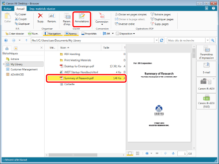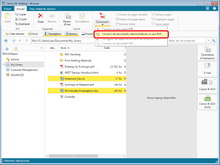 (Conversion) sur le ruban, puis sélectionner [Convertir les documents sélectionnés en un seul document PDF].