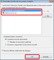 Si vous sélectionnez [Convertir en document PDF], les documents sont convertis séparément.