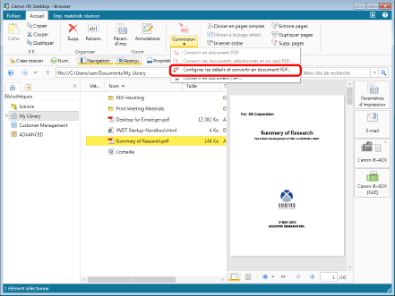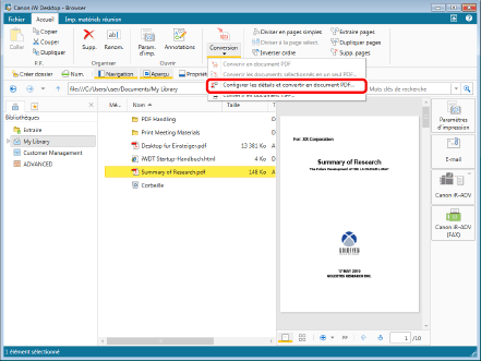(Conversion) sur le ruban, puis sélectionner [Configurer les détails et convertir en document PDF].