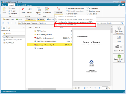 (Conversion) sur le ruban, puis sélectionner [Convertir en document TIFF].