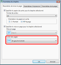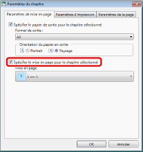 Sélectionnez la case [Spécifier le mise en page pour le chapitre sélectionné].