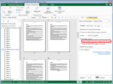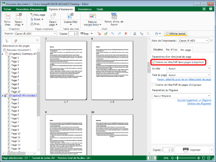 Sous l'onglet [Par. page] de la Fenêtre Détails, cochez la case [Insérer en-tête/PdP dans pages à imprimer].