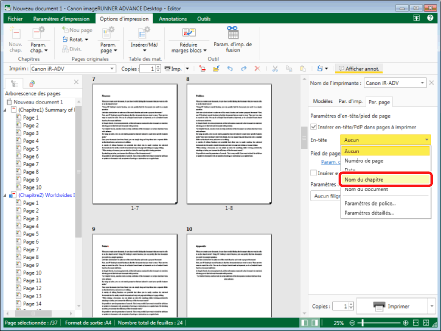 Définissez l'insertion d'un nom de chapitre dans l'en-tête de la page à imprimer.