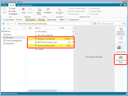 Sélectionnez les documents à télécopier et cliquez sur le bouton de sortie télécopieur dans la barre de sortie.