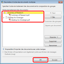 Modifiez l'ordre d'envoi, puis cliquez sur [OK].