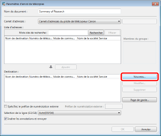 Saisissez les informations de destination, puis cliquez sur [OK].