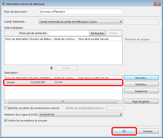 Sélectionnez la destination dans [Liste d'adresses], puis cliquez sur [Ajouter] > [OK].