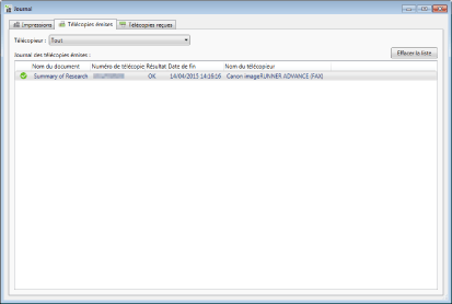 (Printer Monitor) dans la barre des tâches, puis sélectionnez [Afficher le journal des télécopies émises].