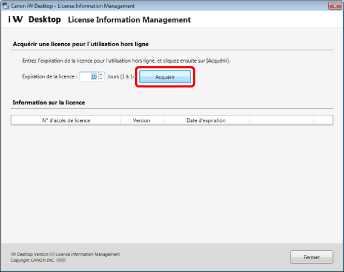 Pour Windows 8, cliquez sur [iW Desktop License Information Management] sur l'écran [Accueil].