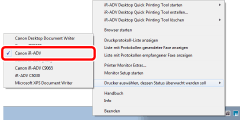 Klicken Sie mit der rechten Maustaste auf das Quick Printing Tool, in dem die zu überwachenden Geräte registriert sind, und wählen Sie [iR-ADV Desktop Quick Printing Tool-Einstellungen].