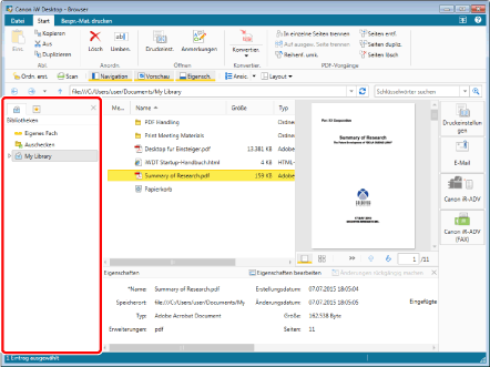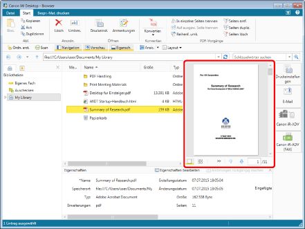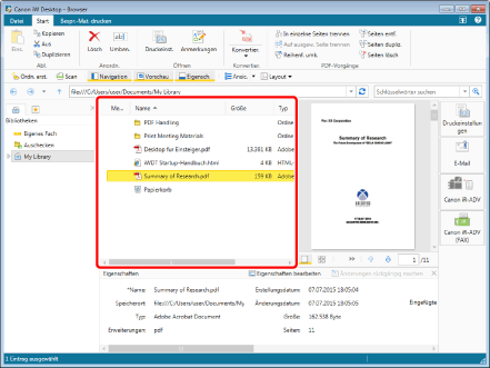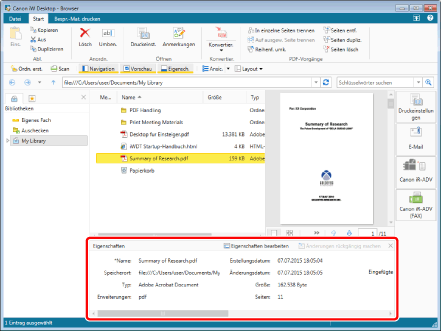 Im Eigenschaftenfenster werden Informationen (Eigenschaften) des im Navigations- oder Dateilistenfenster ausgewählten Dokuments oder Ordners angezeigt.