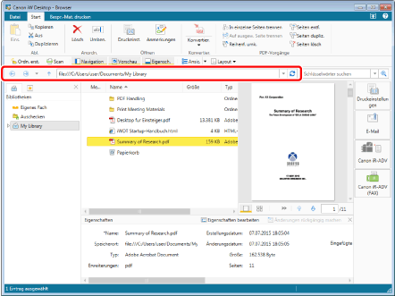 Die Adressleiste zeigt den Pfad einer ausgewählten Bibliothek, des Ordners Eigenes Fach oder eines anderen Ordners. Sie können in der Adressleiste auch auf