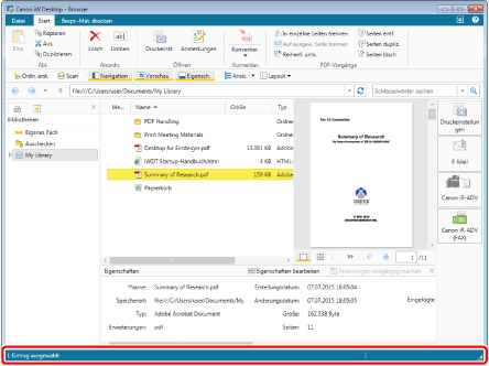 Die Statusleiste zeigt die Anzahl der im Dateilistenfenster ausgewählten Dateien an. Wenn keine Dateien ausgewählt sind, zeigt die Statusleiste die Anzahl der insgesamt im Dateilistenfenster angezeigten Ordner und Dateien an.