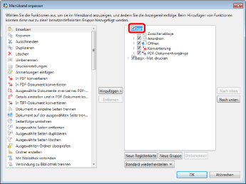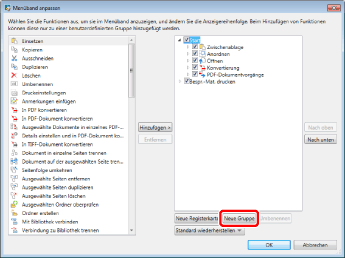 Hinzufügen neuer Registerkarten/Gruppen im Menüband