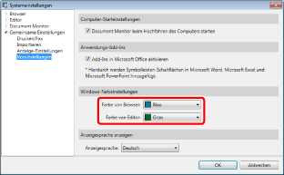 Wählen Sie die gewünschte Farbe in der Pulldown-Liste von [Farbe von Browser] oder [Farbe von Editor] aus.
