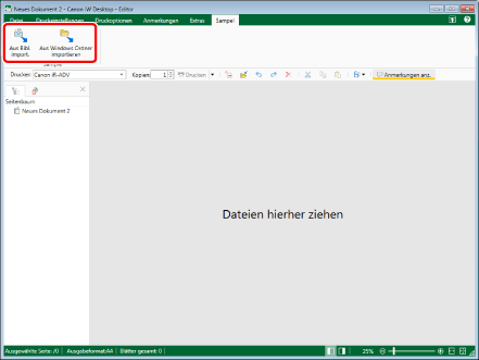 Menü [Datei] > [Optionen] > [Systemeinstellungen] > [Editor] > [Optionen] > [Originaldokument unter Canon Desktop Document speichern]