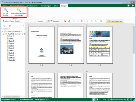 Im Fall eines Excel-Dokuments werden alle Arbeitsblätter zu einem IWB-Dokument hinzugefügt.