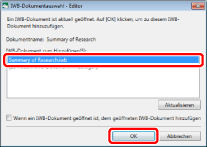 Durch Klicken auf [Aktualisieren] im Dialogfeld [IWB-Dokumentauswahl - Editor] wird eine Liste der in Desktop Editor geöffneten Dokumente aktualisiert.