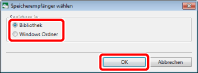 Für neue IWB-Dokumente wird das [Speicherempfänger wählen]-Dialogfeld angezeigt. Weitere Informationen finden Sie hier: