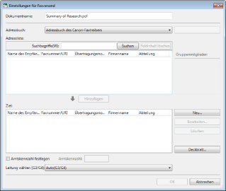 Wenn einer der folgenden Vorgänge durchgeführt wird, wird das Dialogfeld [Einstellungen für Faxversand] angezeigt. Fahren Sie in diesem Fall mit Schritt 8 fort.