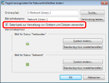 (Das Kontrollkästchen [Datenbank zur Verwaltung von Ordnern und Dateien verwenden] ist aktiviert, die Standardfarbe von [Bibliotheksymbol] ist grün.)