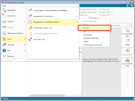 Abhängig vom Druckertyp (z. B. Netzwerkdrucker) können Sie das Druckerausgabesymbol möglicherweise nicht per Drag & Drop registrieren. In diesem Fall registrieren Sie das Druckerausgabesymbol über die erweiterten Einstellungen. Weitere Informationen zum Konfigurieren der erweiterten Einstellungen finden Sie hier: