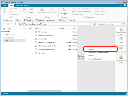 für das im Menüband oder in der Symbolleiste angezeigte Druckerausgabesymbol klicken und [Ändern] wählen. Wenn ein Ausgabesymbol nicht im Menüband oder in der Symbolleiste angezeigt wird, lesen Sie in folgenden Abschnitten nach, wie Sie es anzeigen. |