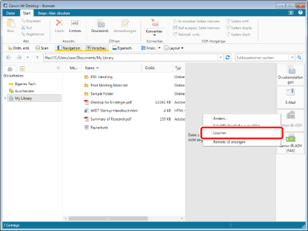 Oder wählen Sie im Menü [Datei] > [Extras] > [Ausgabeleiste-Einstellungen] > (Name des Druckers) > [Löschen].