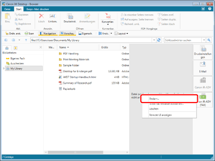 Bindet die ausgewählten Dokumente in Desktop Editor, bevor sie als Fax versendet werden.
