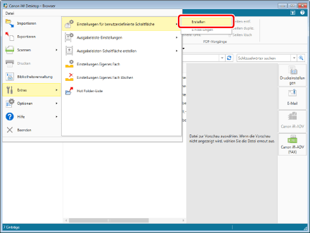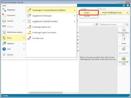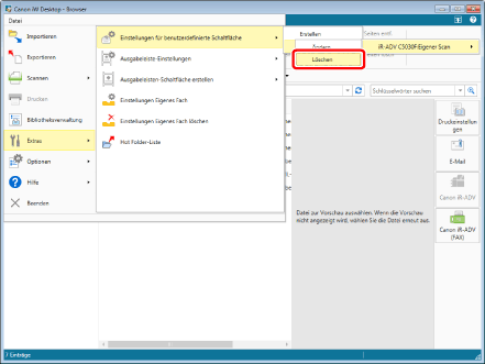 Die registrierte benutzerdefinierte Schaltfläche wird aus Desktop Browser gelöscht, aber die Schaltfläche für das Schnellmenü des imageRUNNER ADVANCE-Geräts wird nicht gelöscht.