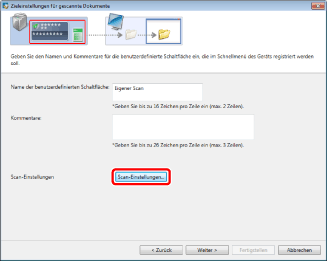 Die Elemente, die im Gerät konfiguriert werden können und häufig verwendet werden, werden im [Scan-Einstellungen]-Bildschirm als Einstellungselemente angezeigt.