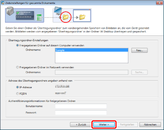 Geben Sie einen Ordner an, in dem gescannte Dokumente abgelegt werden sollen, bevor sie an den Zielordner übertragen werden.