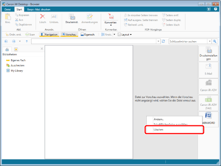 Alternativ wählen Sie im Menü [Datei] > [Ausgabeleiste-Einstellungen] > (Anwendungsname) > [Löschen].