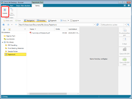 Sie können den Papierkorb nur dann für die Document Server Bibliothek oder SharePoint Serverbibliothek verwenden, wenn Sie mindestens über die Bearbeitungsberechtigung verfügen.