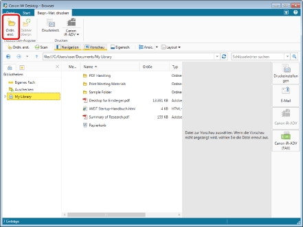 Wählen Sie im Navigationsfenster die Bibliothek/den Ordner, in der/dem Sie einen Ordner erstellen möchten.