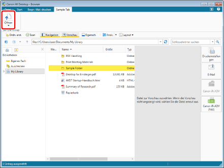 (Alle ausw.) oder in der Symbolleiste auf (Alle ausw.) klicken, um alle im Dateilistenfenster angezeigten Ordner und Dokumente auszuwählen. |