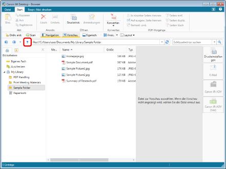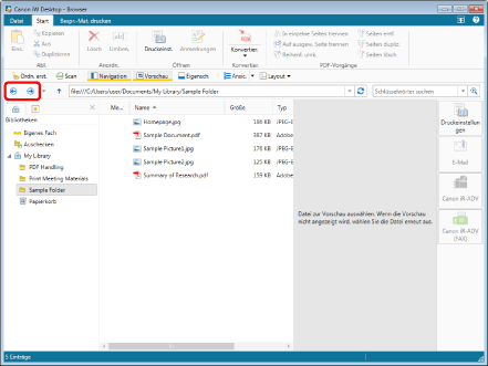 Sie können die Maus aus einem Bereich des Dateilistenfensters, in dem nichts angezeigt wird, ziehen, um mehrere Dokumente/Ordner auszuwählen. Die Taste [Umschalt] auf der Tastatur kann jedoch während dieses Vorgangs nicht verwendet werden.