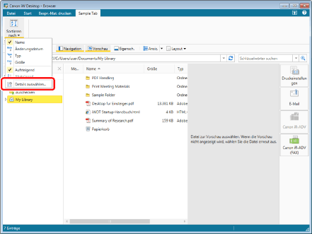 (Sortieren nach) und wählen Sie anschließend in der Pulldown-Liste [Details auswählen].